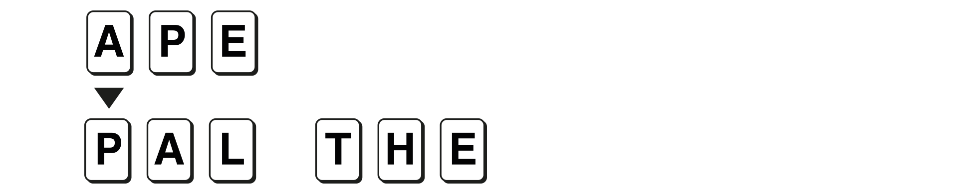 Å×ÀÌºí¿¡ ³õ¿©Áø ´Ü¾î APE¸¦ ºÐÇØÇϰí ÀÚ½ÅÀÌ °¡Áø ŸÀÏL, T, H¸¦ ÀÌ¿ëÇÏ¿© »õ·Î¿î ´Ü¾î PAL°ú THE¸¦ ¸¸µç´Ù.